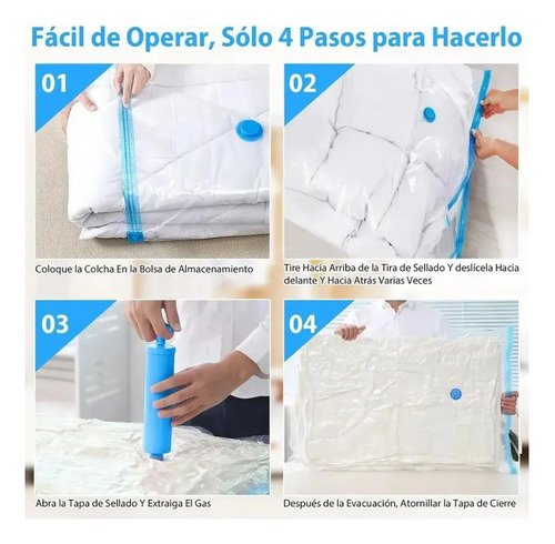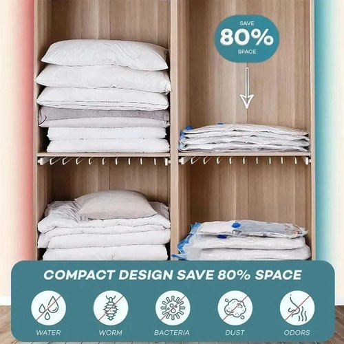 Perfectas para organizar closets, maletas o almacenar prendas fuera de temporada. Se recomienda utilizar una bomba de vacío (no incluida) para extraer el aire y maximizar el ahorro de espacio.