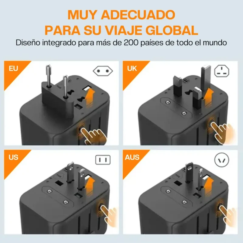 Con este adaptador ya no tendrás que cargar varios cargadores ni preocuparte por el tipo de enchufe del país que visites.