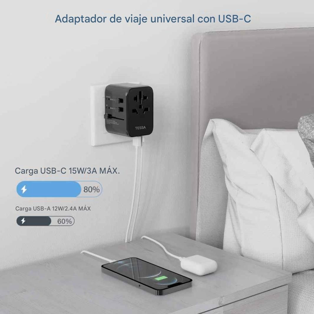 Adaptador de viaje universal con USB y tipo C TESSAN