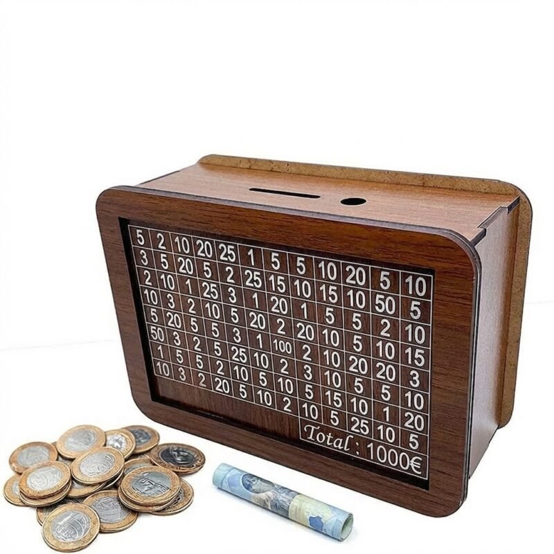 ¡Alcanza tus metas de ahorro de forma divertida! Esta alcancía de madera estilo retro te ayuda a juntar hasta $125,000 pesos de manera visual y motivadora.