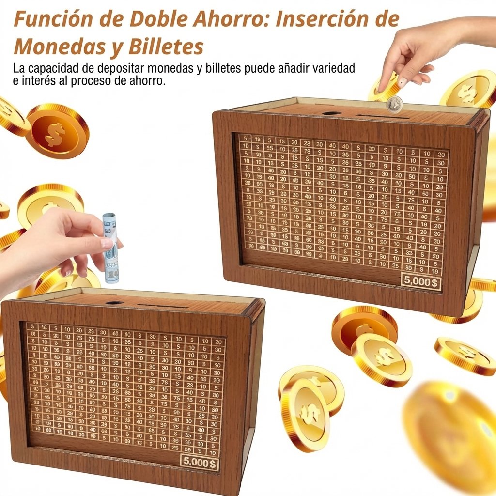 Ideal para: Ahorrar para vacaciones, un coche, enganche de casa, fondo de emergencia o cualquier meta financiera. También es un regalo perfecto para motivar el ahorro en familia, amigos o pareja.