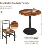 La mesa, con un diámetro de 60 cm y una altura de 77 cm, se adapta perfectamente a cualquier rincón, ofreciendo un ambiente acogedor para tus comidas.