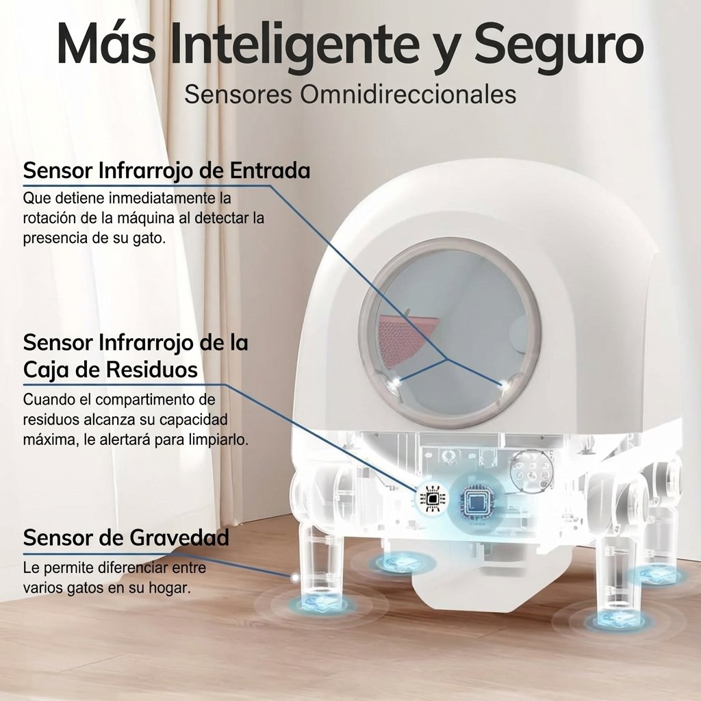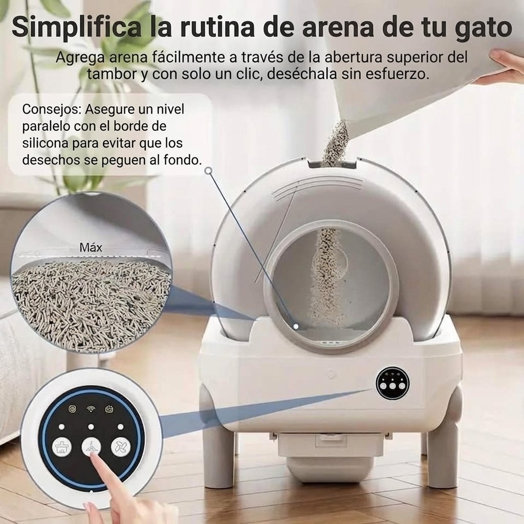Su gran capacidad lo hace perfecto si tienes más de un gato en casa. El mecanismo automático se activa después de que tu gato lo usa, por lo que siempre encontrará un espacio limpio y cómodo. Además, su diseño compacto y moderno encaja fácilmente en cualquier rincón del hogar.
