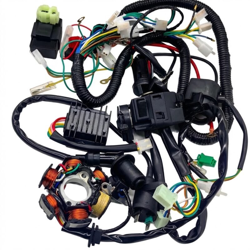 Este arnés de cables eléctricos es ideal para motonetas y motocicletas de 110cc a 125cc. Perfecto para reemplazar el cableado dañado o desgastado de tu moto y mantenerla funcionando como nueva.