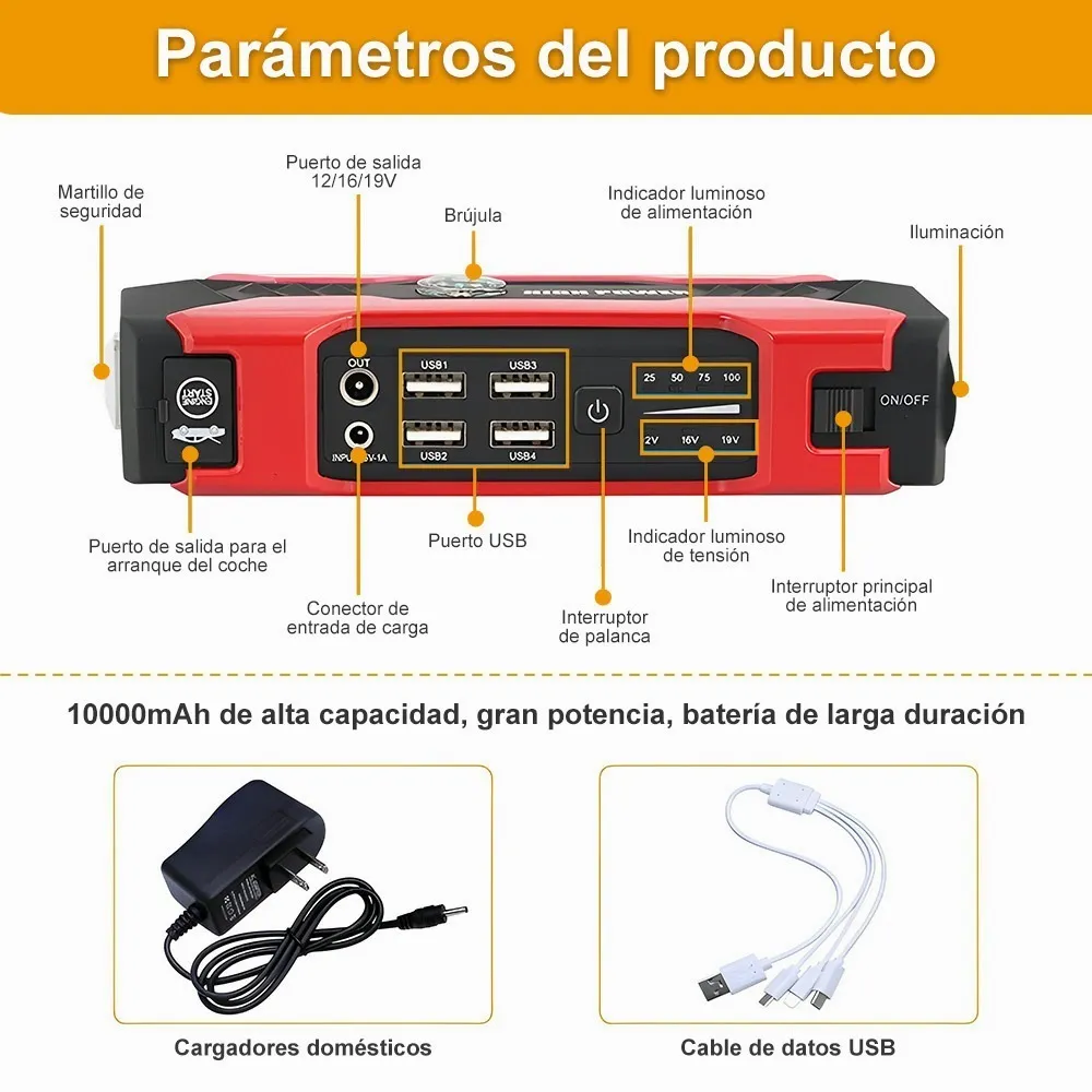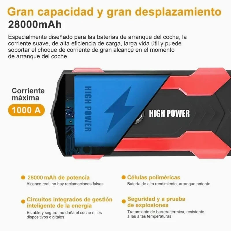 ARRANCADOR DE COCHE DE 1000 A CON 28000MAH POWER BANK