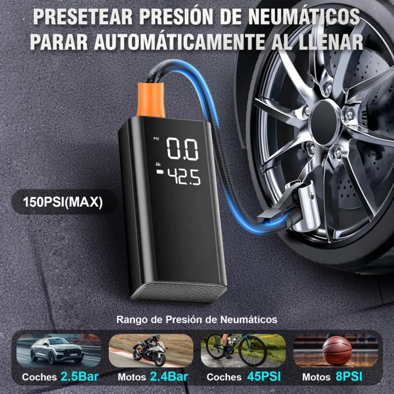 Arrancador Portatil 1000A con Compresor de Aire 150PSI,10000mAh Batería 12V