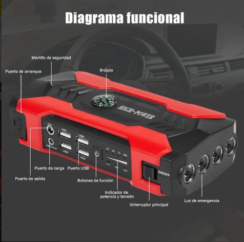 El Arrancador de Batería de Coche Portátil es la solución ideal para quienes buscan un respaldo confiable en situaciones de emergencia. Este dispositivo garantiza un arranque rápido y eficiente para carros y camionetas, asegurando que nunca te quedes varado.