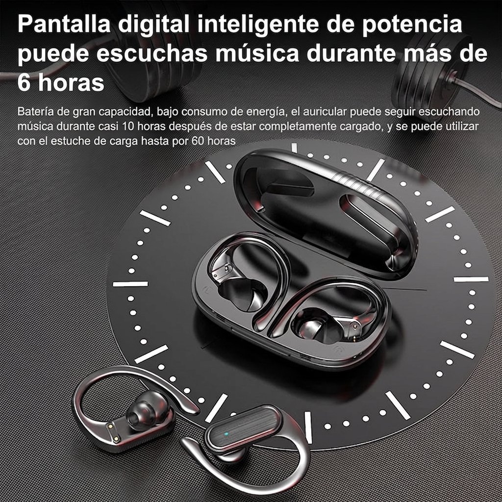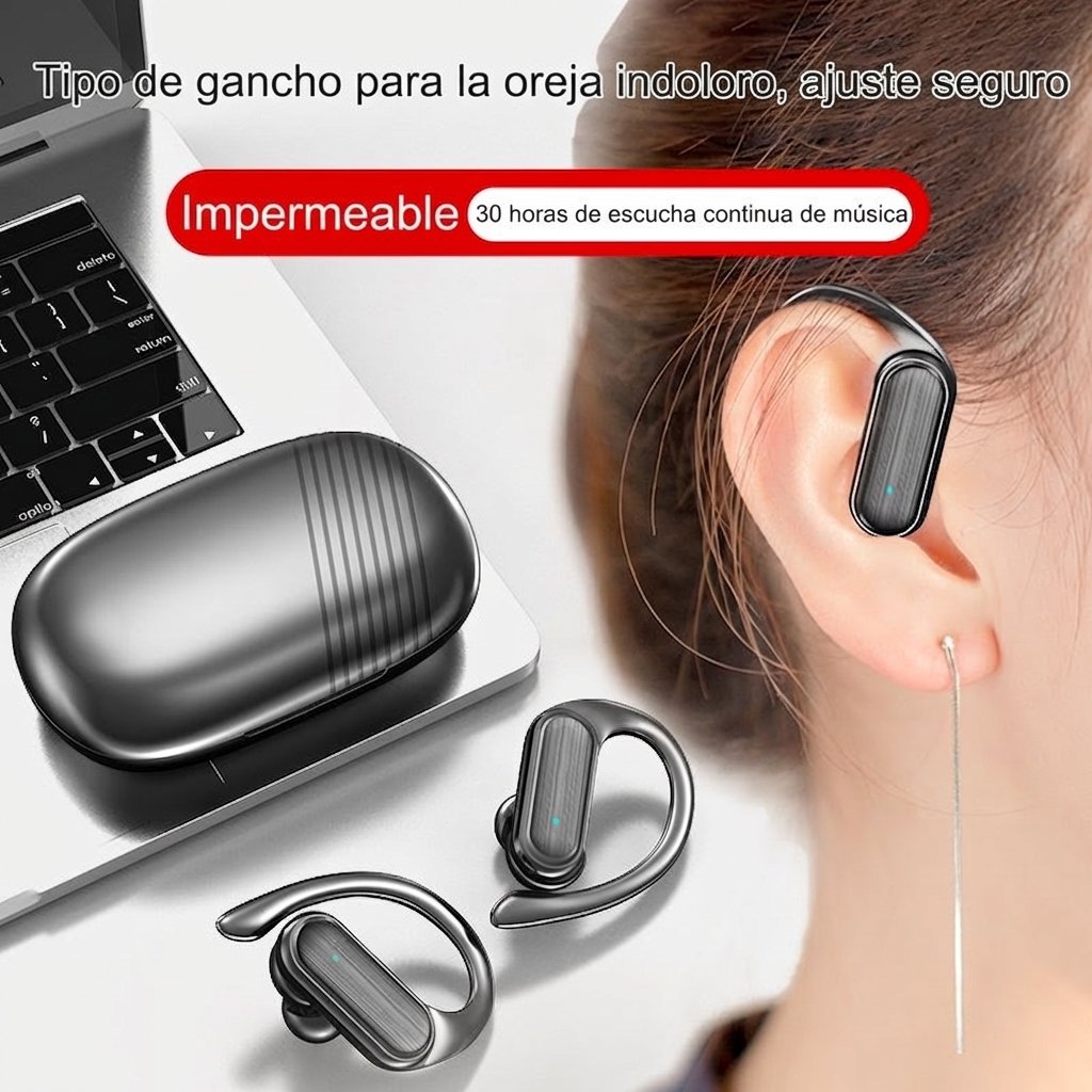 Estos audífonos inalámbricos son perfectos para quienes llevan un estilo de vida activo. Con su diseño de gancho para la oreja, se ajustan de forma segura durante el ejercicio, correr o andar en bicicleta sin que se caigan.