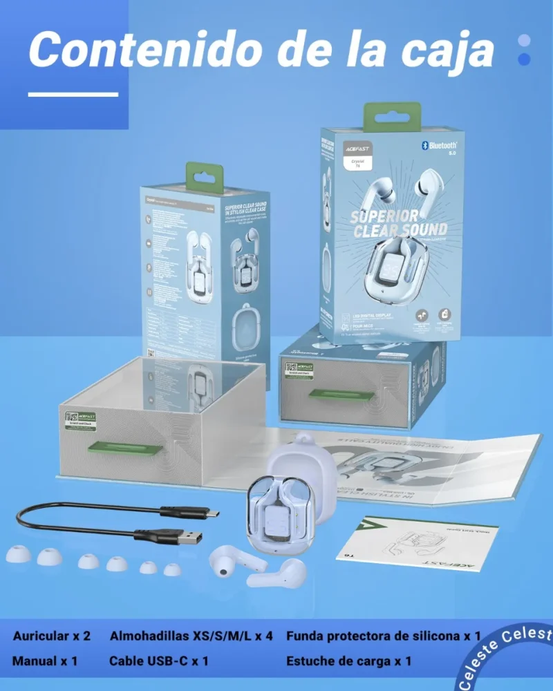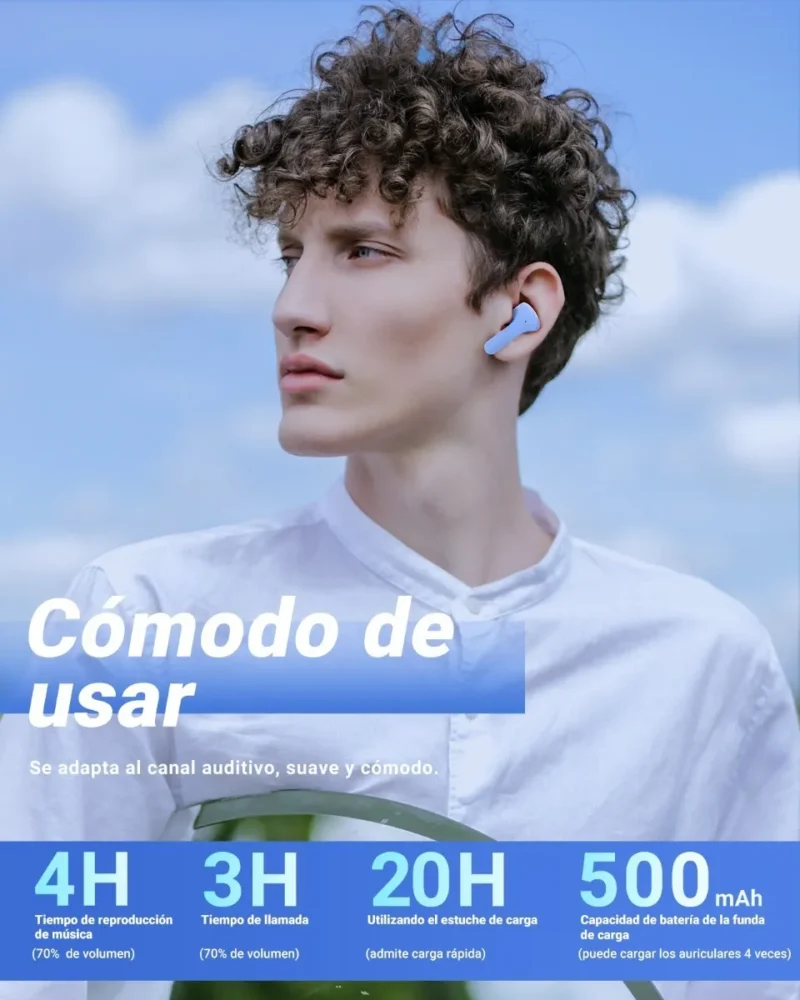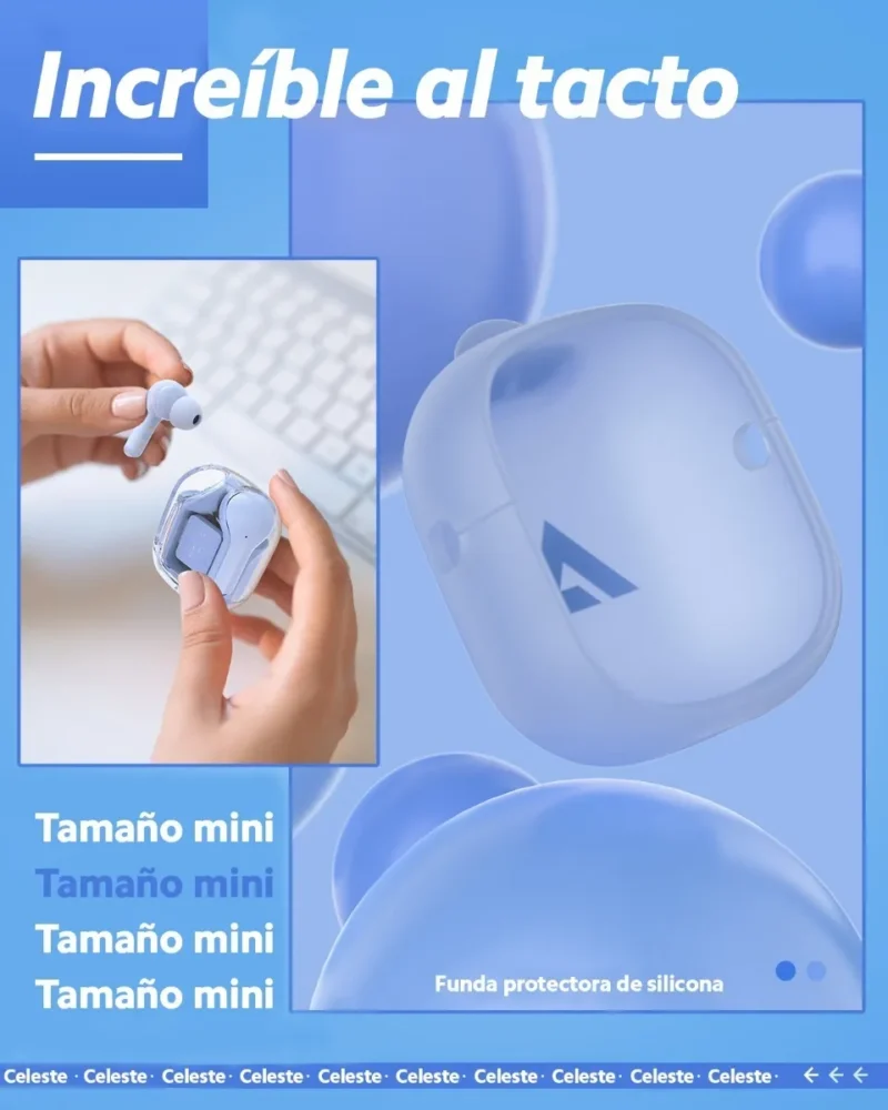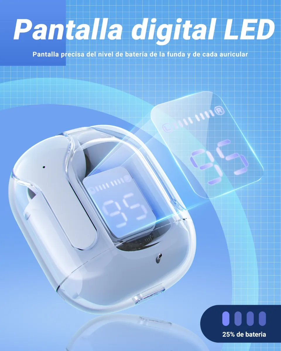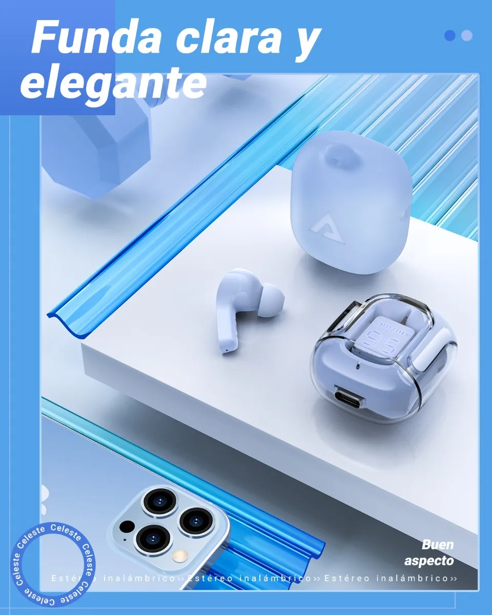 Diseño de moda: auriculares inalámbricos en la oreja, apariencia colorida y transparente, a la moda y únicos, cómodos de usar, lo que garantiza la máxima comodidad durante el uso prolongado.