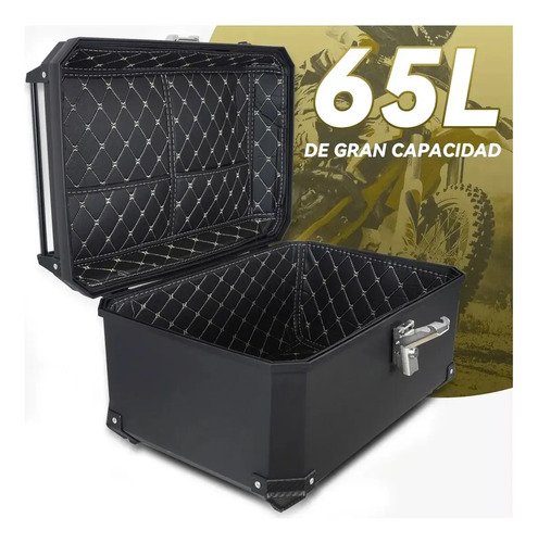 Su amplio espacio interior permite guardar objetos personales y equipo de protección. El sistema de cierre metálico asegura tus pertenencias durante el viaje.