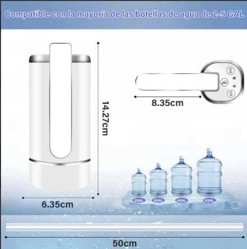 La Bomba Plegable Dispensador De Agua Eléctrico USB Recargable es la solución perfecta para quienes buscan comodidad y funcionalidad en el suministro de agua. Con un diseño práctico y elegante, esta bomba tiene un diámetro de 6 cm y una altura de 25 cm, lo que la hace ideal para cualquier bidón de hasta 19 L, asegurando que tu hidratación sea sencilla y eficiente.