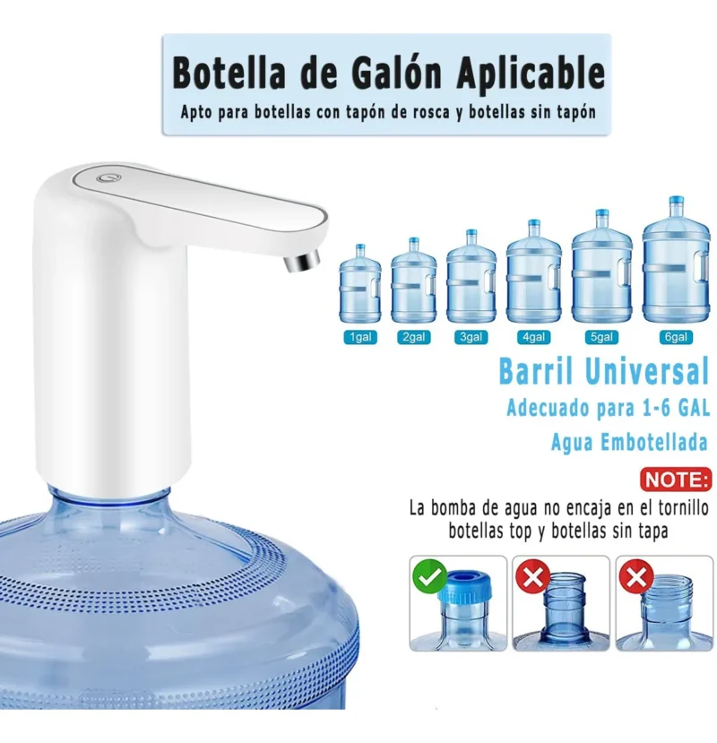 - Universal: Compatible con garrafones estándar de 10, 19 y 20 litros