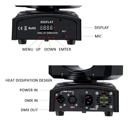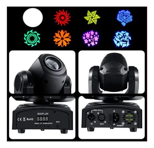 Con una variedad de colores de luz que incluyen rojo, amarillo, verde, azul, morado y blanco, esta cabeza móvil permite crear atmósferas únicas y personalizadas. Su versatilidad se ve reflejada en los modos de control disponibles: DMX512, automático y control por sonido, lo que facilita su uso en diferentes entornos y situaciones.