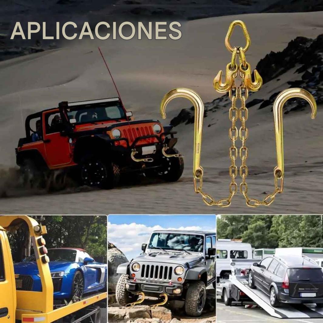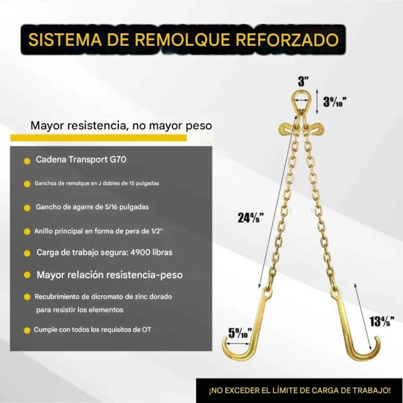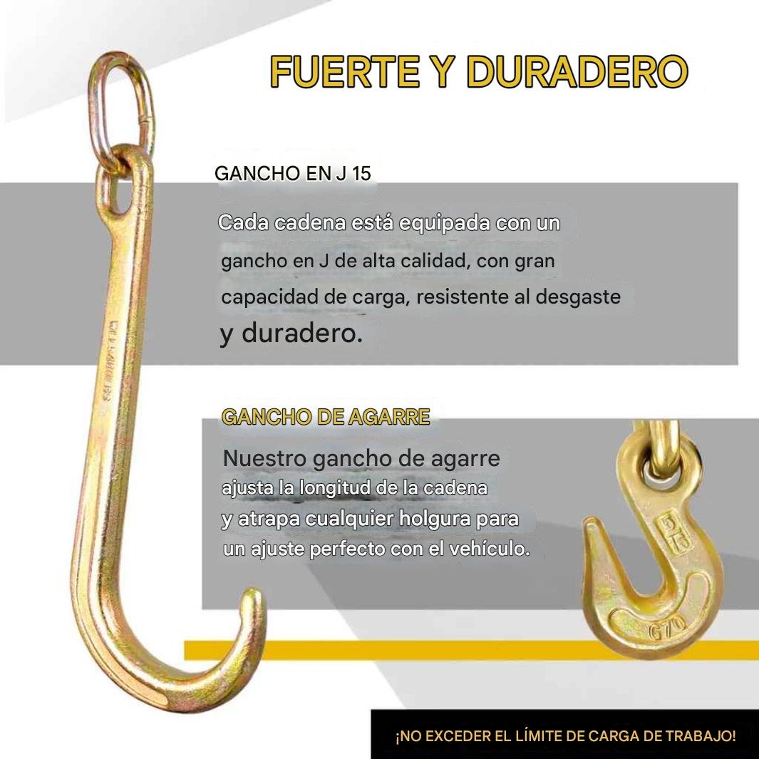Si necesitas remolcar o asegurar cargas pesadas, esta cadena de arrastre doble es justo lo que andabas buscando. Esta disenada para jalones exigentes y trabajos de campo donde no puedes arriesgarte a que algo falle.