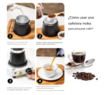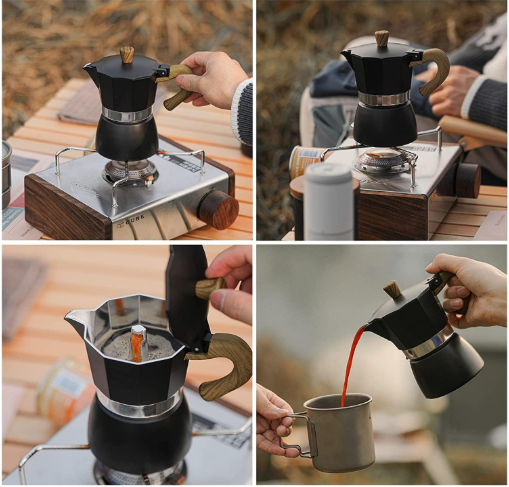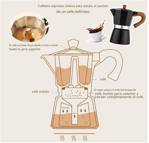 Prepara un café espresso rico y concentrado desde la comodidad de tu casa o en tu próxima aventura de camping. Esta cafetera italiana tipo moka es ideal para los que disfrutan un buen café sin complicaciones.