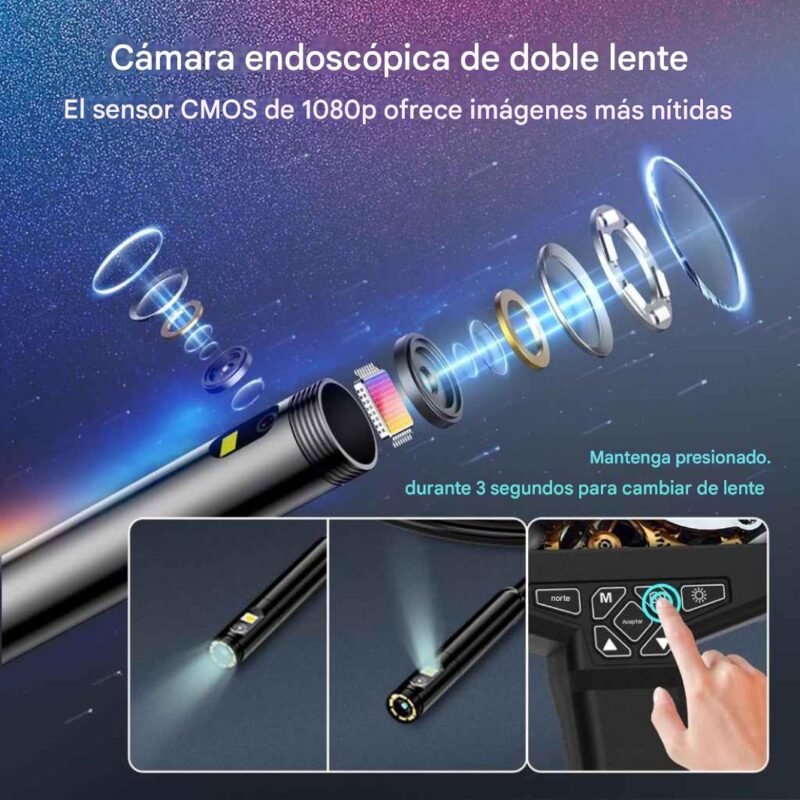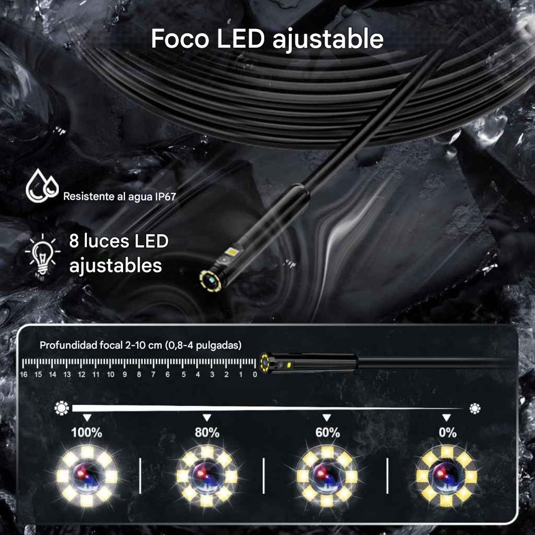 Inspecciona lugares difíciles de ver con esta cámara endoscopio profesional. Perfecta para revisar tuberías, paredes, motores de autos, conductos y cualquier espacio estrecho sin necesidad de desarmar nada.