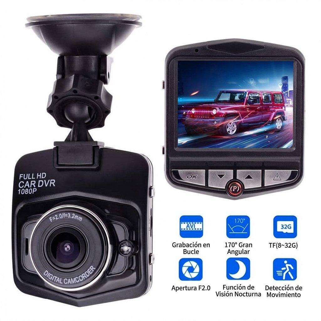 Protege tu vehículo las 24 horas con este sistema completo de grabación. Incluye cámara frontal de alta definición 1080P con pantalla IPS a color, cámara trasera resistente al agua, y todos los accesorios necesarios para instalación.