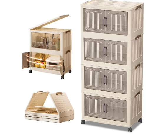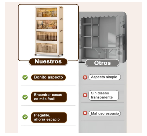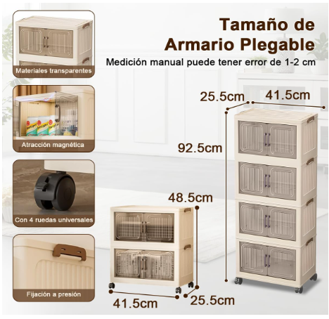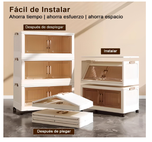 No necesitas herramientas para armarlo. Se pliega en un segundo y ocupa muy poco espacio cuando no lo usas. Las ruedas con freno te permiten fijarlo en el lugar que quieras sin que se mueva. Perfecto para mantener todo ordenado y a la mano en cualquier rincón de tu casa.