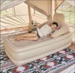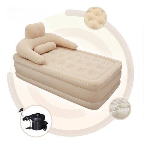 Su material de PVC garantiza durabilidad y resistencia, soportando hasta 120 kg de peso. La bomba de aire eléctrica incorporada facilita el inflado y desinflado, permitiéndote disfrutar de tu colchón en cuestión de minutos, sin complicaciones.