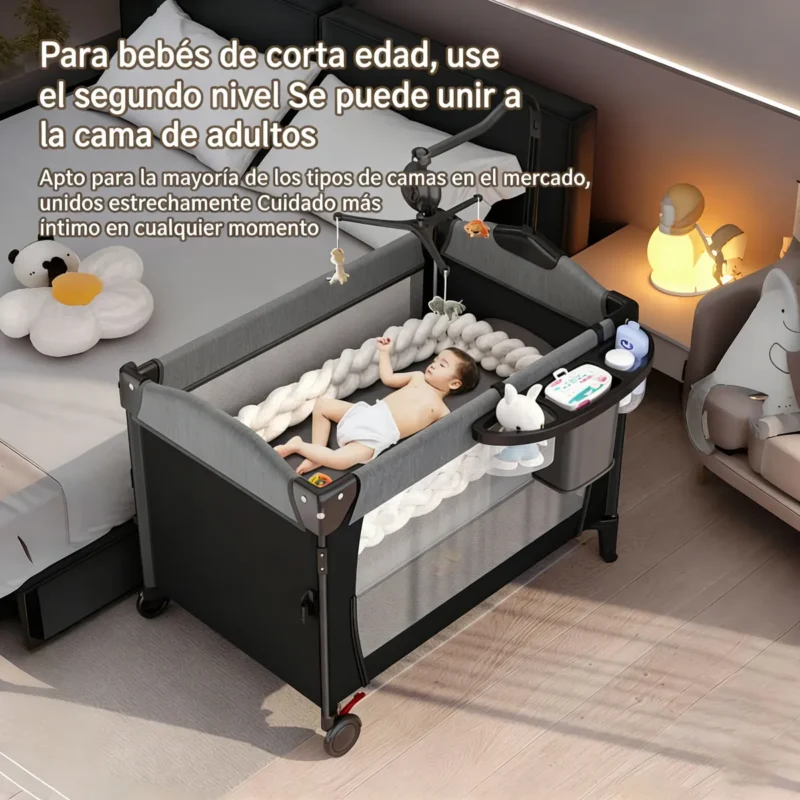 Esta cuna corral es perfecta para que tu bebé duerma y juegue seguro en casa o de viaje. Su diseño plegable la hace muy fácil de guardar y transportar, ideal para familias que buscan practicidad sin sacrificar la seguridad del bebé.