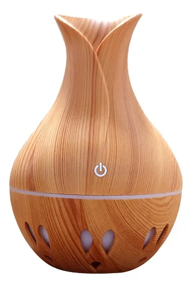 Este difusor de aromas y humidificador combina funcionalidad y diseño elegante para crear el ambiente perfecto en tu hogar u oficina. Con su acabado imitación madera natural y forma de tulipán, se ve hermoso en cualquier espacio.