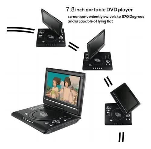 Descubre el Reproductor DVD Portátil Multifunción HD de 7.8 pulgadas, diseñado para quienes buscan entretenimiento en cualquier lugar. Su pantalla de alta definición ofrece una experiencia visual nítida y envolvente, ideal para disfrutar de tus películas y series favoritas.
