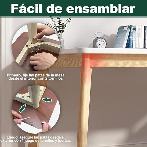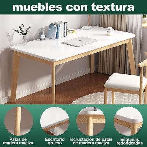 Ideal para oficinas, estudios o habitaciones, este escritorio combina funcionalidad y diseño moderno. Su superficie blanca y patas de madera natural aportan un toque elegante y minimalista a cualquier espacio.