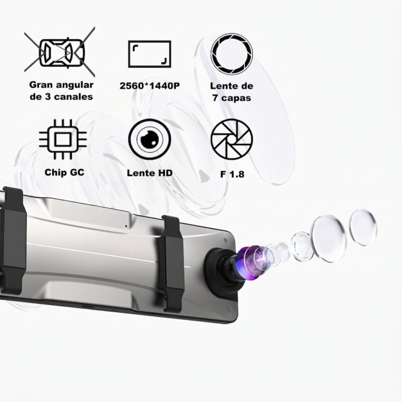 ¿Quieres manejar con más tranquilidad y seguridad? Este espejo retrovisor con cámara integrada es justo lo que necesitas para tu coche. Con pantalla grande de 12 pulgadas y grabación en 4K ultra HD, vas a ver todo clarísimo, de día y de noche.