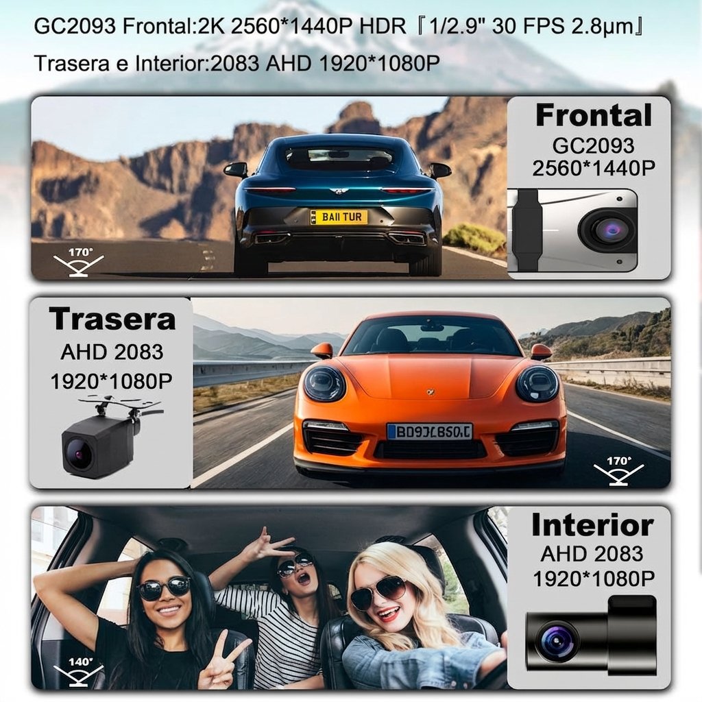 • Monitoreo de estacionamiento, graba aunque el carro esté apagado