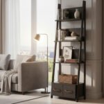 El estante cuenta con un espacio amplio para exhibir tus libros, decoraciones o plantas, y dos cajones que ofrecen un almacenamiento adicional para mantener tus objetos organizados. Es perfecto para aprovechar al máximo el espacio vertical sin sacrificar el estilo.