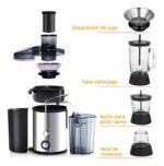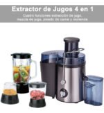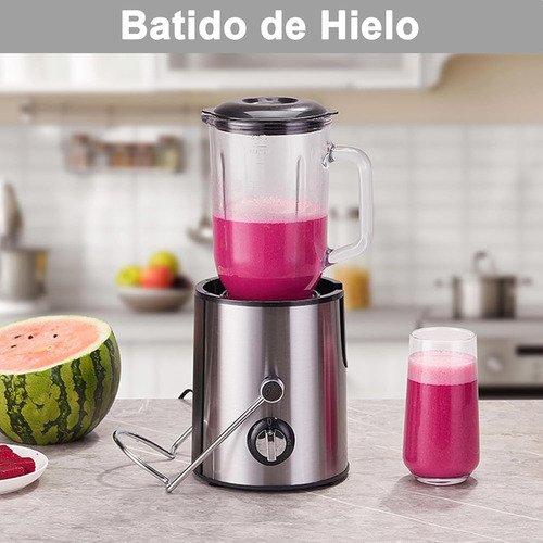 Disfruta de bebidas frescas y saludables con este extractor de jugos y licuadora 4 en 1, fabricado en acero inoxidable para mayor durabilidad y fácil limpieza.