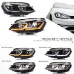 Mejora la visibilidad y el estilo de tu Volkswagen Golf Mk7 con estos faros LED secuenciales de alta calidad, inspirados en el diseño R.