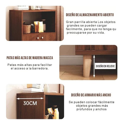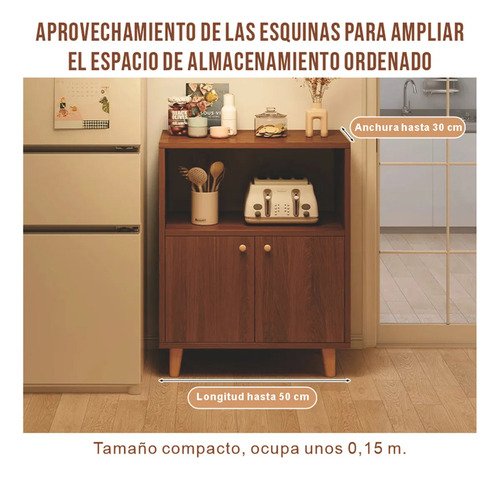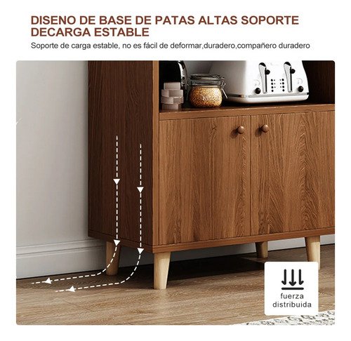 Fabricado en MDF, este gabinete combina durabilidad y estilo, ofreciendo un soporte máximo de 9.2 kg. Sus dos puertas permiten un fácil acceso a tus electrodomésticos y utensilios, manteniendo todo en orden y al alcance de la mano.
