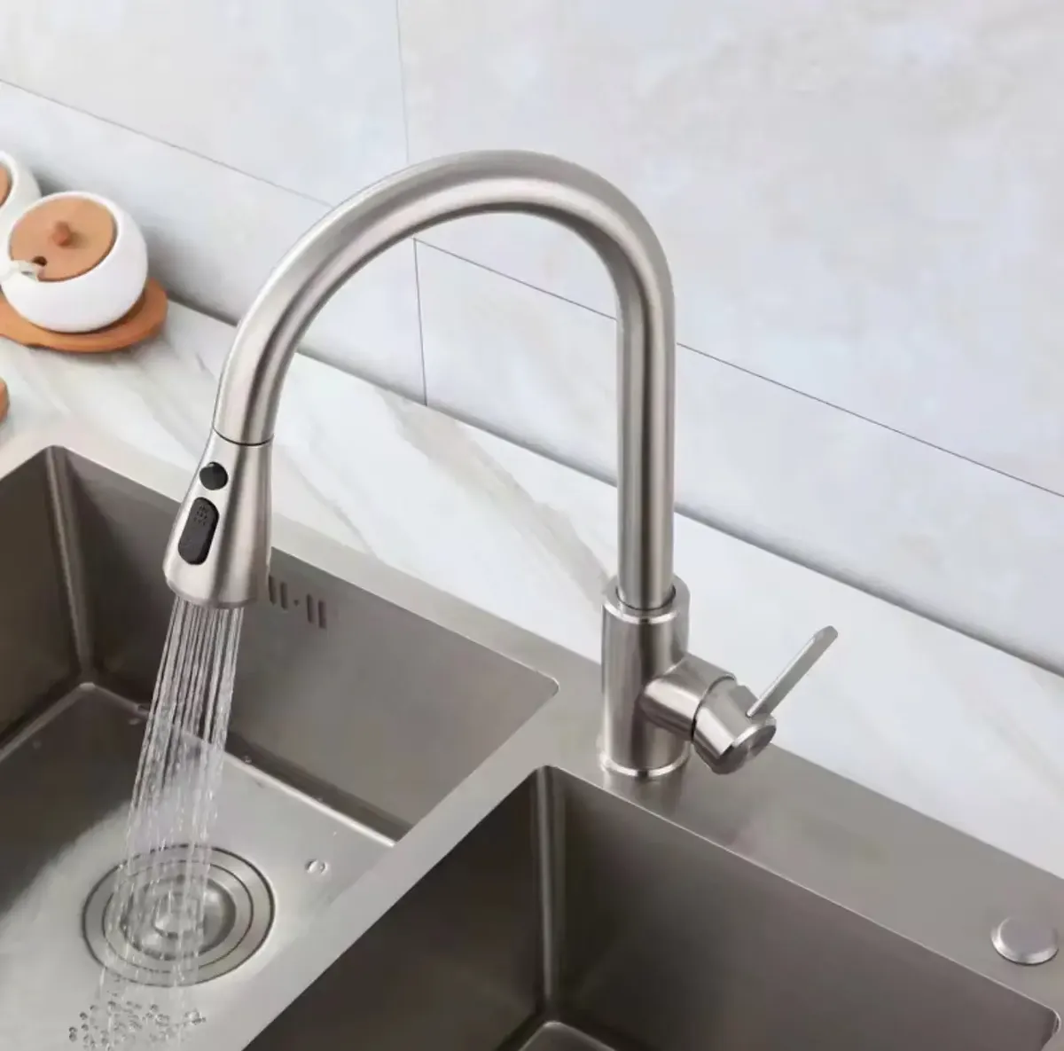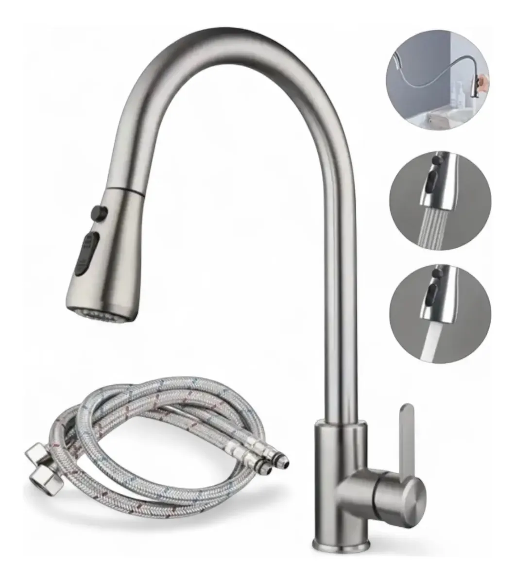 Renueva tu cocina con esta llave de alta calidad fabricada en acero inoxidable 304, resistente a la oxidación y muy fácil de limpiar. Su diseño moderno y acabado cepillado le da un toque elegante a cualquier fregadero.