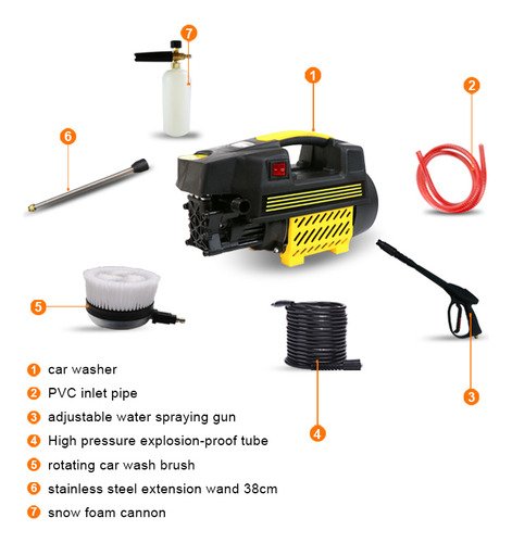 Potente hidrolavadora eléctrica portátil ideal para limpieza de exteriores, vehículos y superficies difíciles. Su diseño compacto y ergonómico facilita el transporte y almacenamiento.