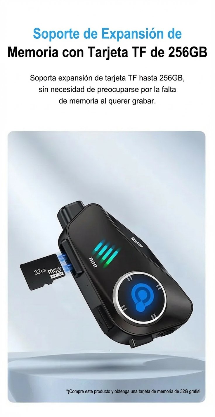 Intercomunicador con Cámara para Casco de Motocicleta con Bluetooth Integrado