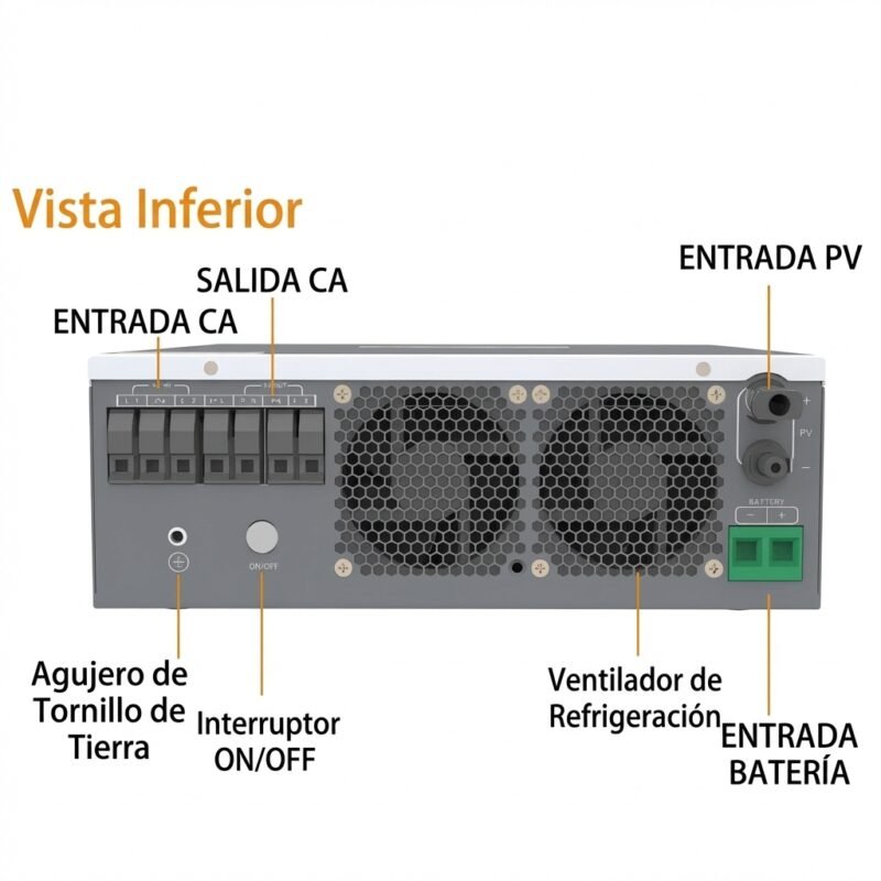 - Voltaje de 48V DC y salida de 120V AC estándar americano