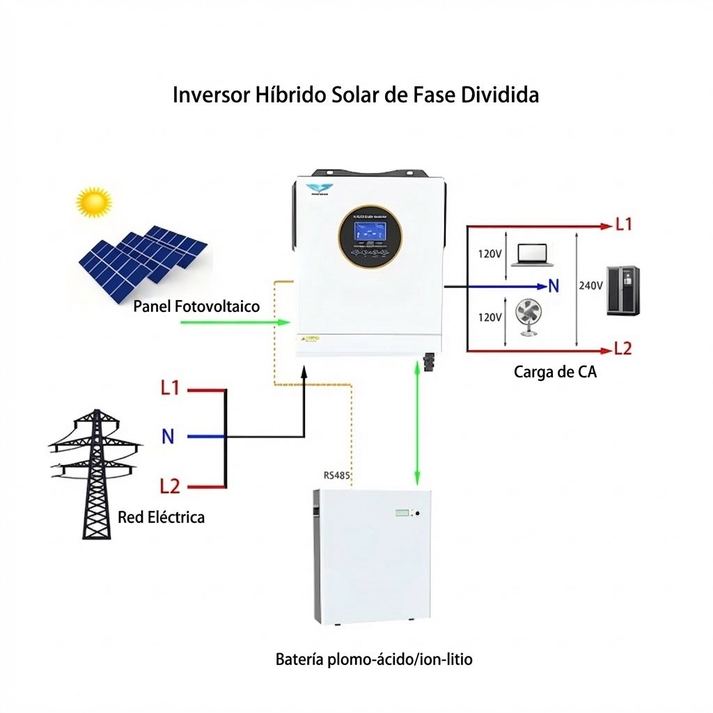- Sistema híbrido que te permite usar paneles solares y red eléctrica