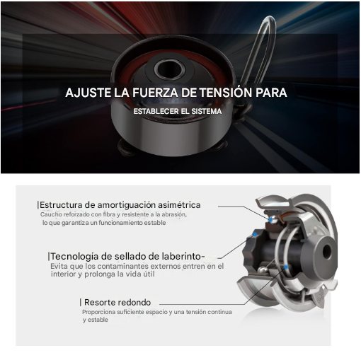 Dale mantenimiento preventivo a tu motor con este kit completo de banda de distribución. Incluye todo lo que necesitas para hacer el cambio de manera correcta y sin complicaciones.