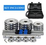 Transforma tu rutina de entrenamiento con este set de mancuernas ajustables, diseñado para adaptarse a tus necesidades y objetivos. Con un peso de 9 kg cada una, estas mancuernas son ideales tanto para principiantes como para atletas experimentados que buscan mejorar su fuerza y resistencia.