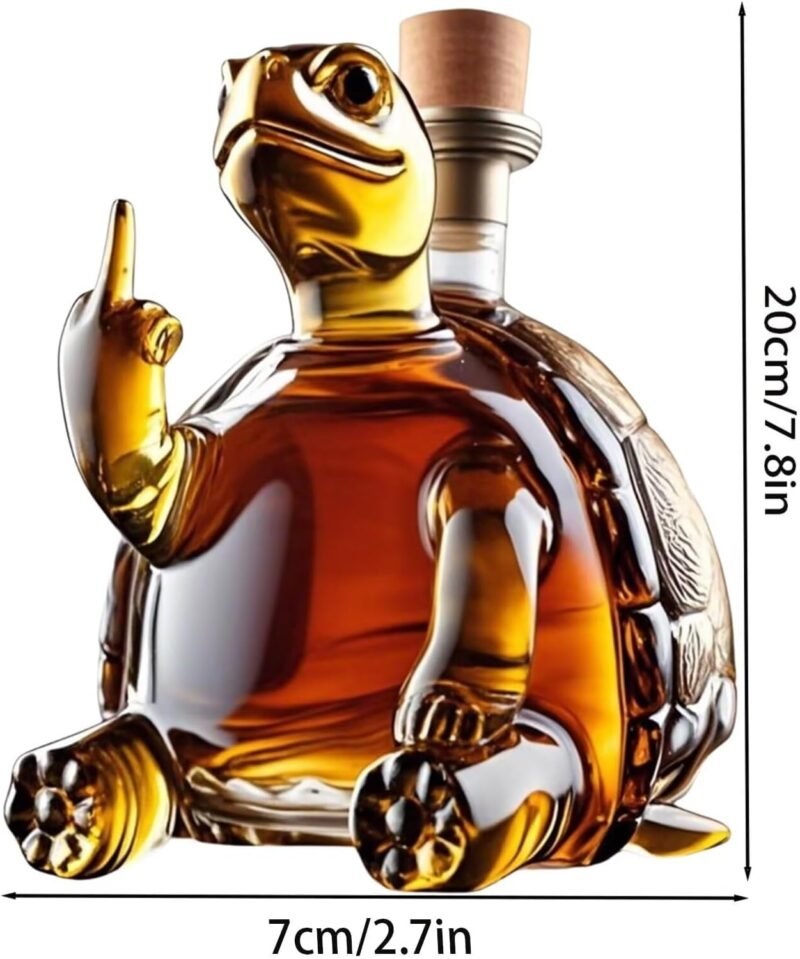 Dale un toque original a tu bar o sala con esta licorera decorativa en forma de tortuga. Esta pieza combina diseño artístico con funcionalidad, perfecta para servir y guardar tu whisky, tequila, brandy o el licor de tu preferencia.