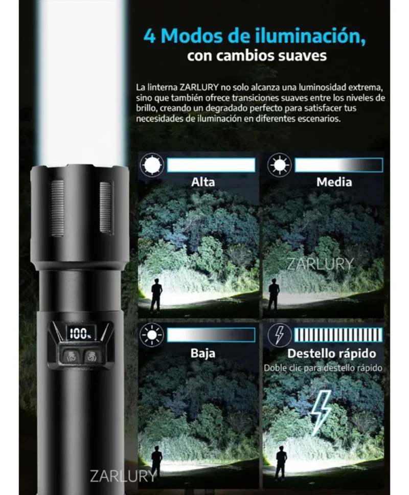 Esta potente linterna cuenta con una función de zoom que te permite lograr un efecto de foco fácilmente. Una linterna para todas tus necesidades.