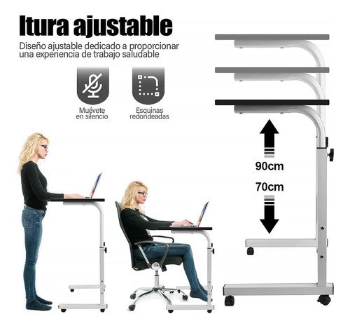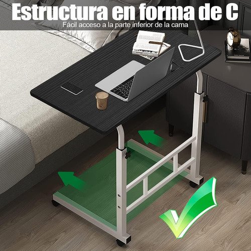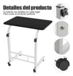 Mesa auxiliar ideal para trabajar o estudiar desde casa, diseñada para laptops y dispositivos electrónicos. Su estructura ajustable en altura y ruedas giratorias permiten moverla fácilmente y adaptarla a diferentes espacios y necesidades.