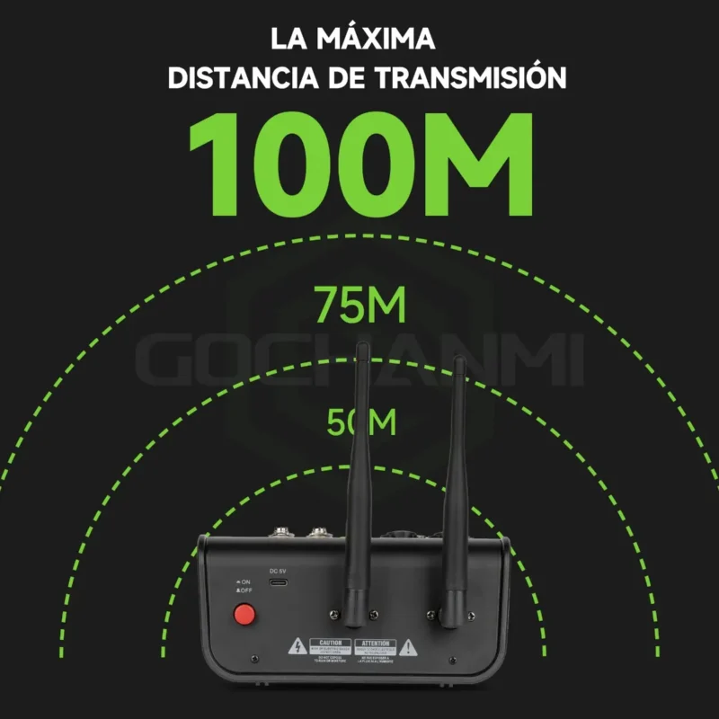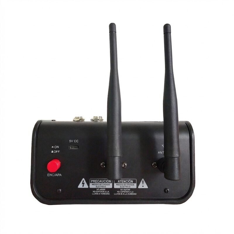- 2 micrófonos inalámbricos UHF con display de frecuencia