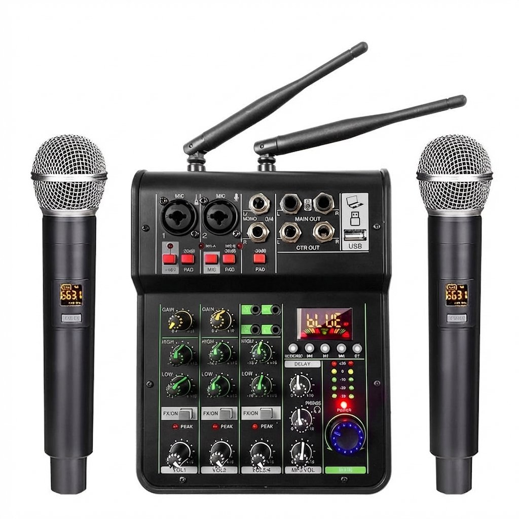 Esta mezcladora es perfecta si buscas una solución completa para karaoke, eventos, podcasts o presentaciones en vivo. Viene con todo lo que necesitas para empezar de inmediato.