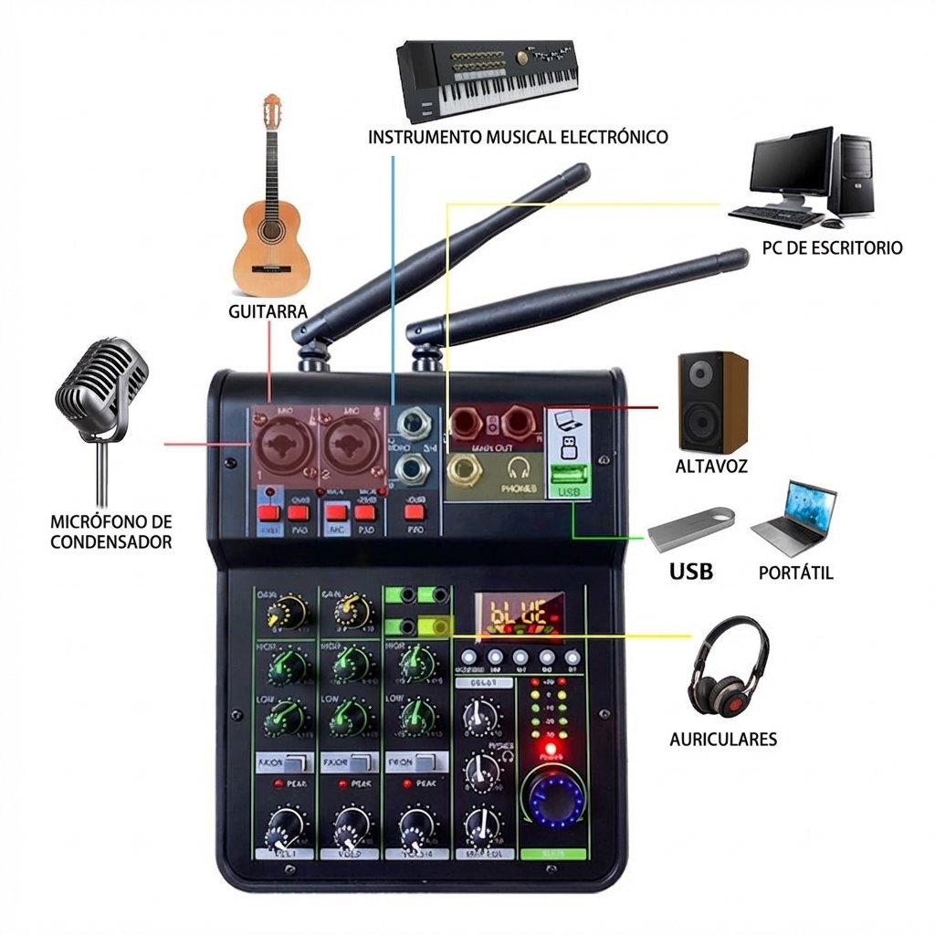 Con esta mezcladora tienes el control total del sonido en un equipo compacto y facil de usar, sin necesidad de ser un experto en audio.