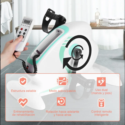 Esta mini bicicleta de pedales eléctrica es perfecta para mantenerte activo desde la comodidad de tu silla, escritorio o sillón. Ideal para personas en recuperación, adultos mayores o cualquiera que quiera moverse más durante el día sin salir de casa.