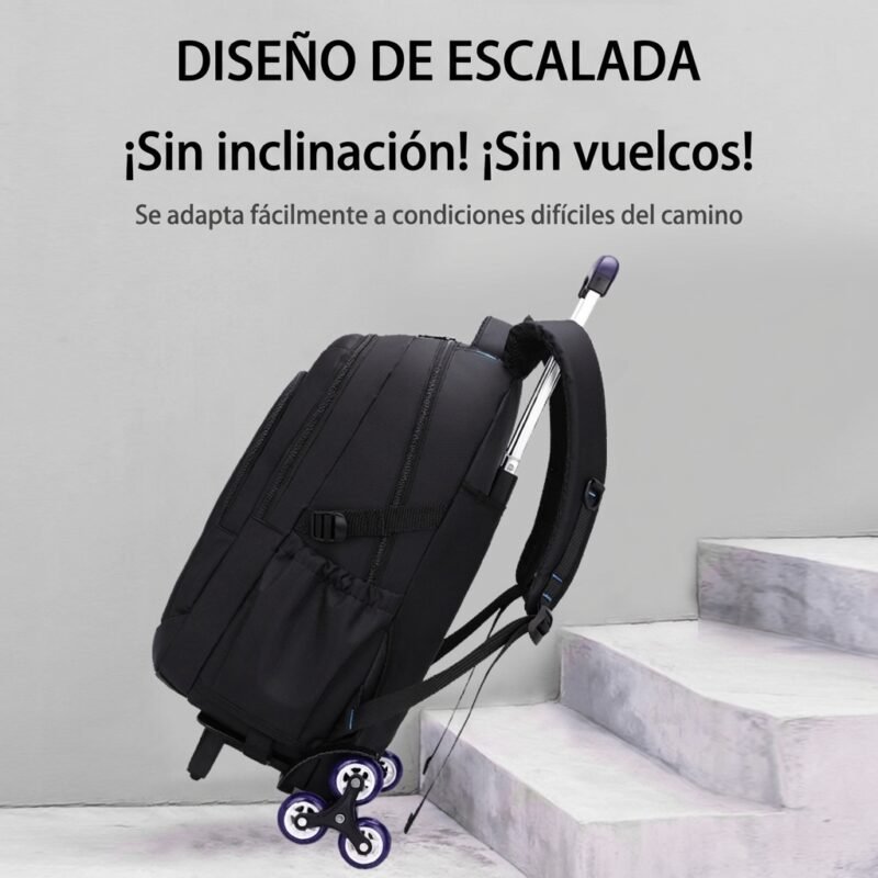 Esta práctica mochila con carrito integrado es ideal para estudiantes, viajeros y cualquier persona que busque comodidad. Su diseño en color negro la hace versátil y elegante para cualquier ocasión.