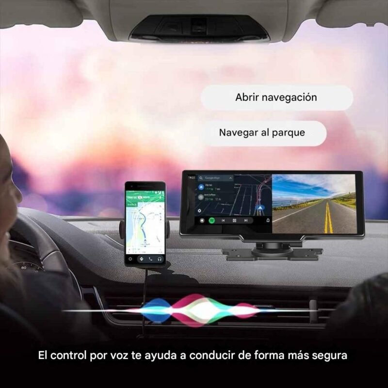 Dale una actualización completa a tu carro sin necesidad de hacer instalaciones complicadas. Esta pantalla portátil se coloca fácilmente en tu tablero y te conecta al instante con Apple CarPlay y Android Auto para que uses el GPS, la música y tus apps favoritas sin distracciones.