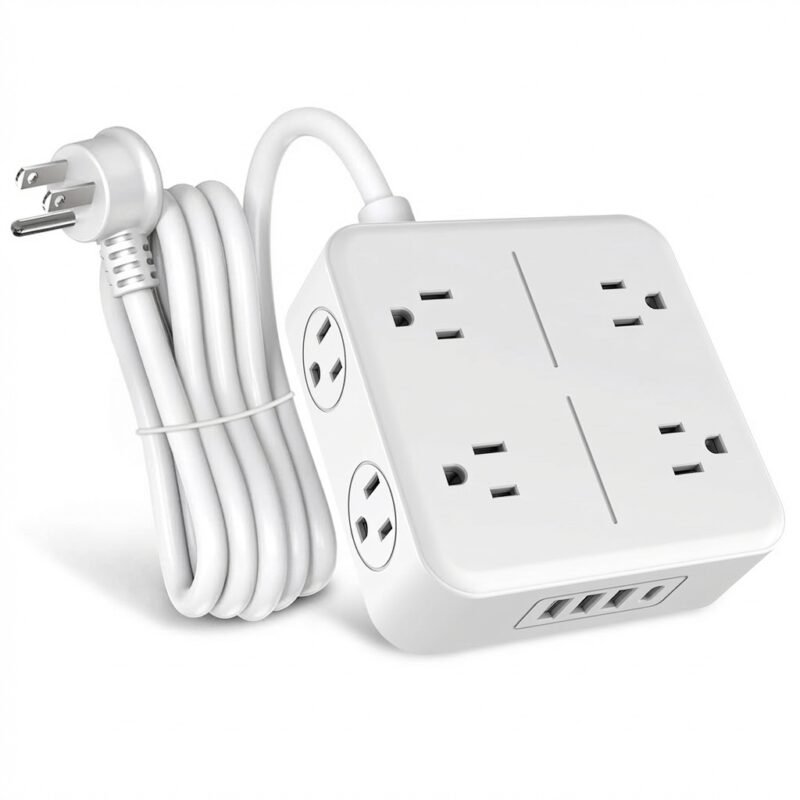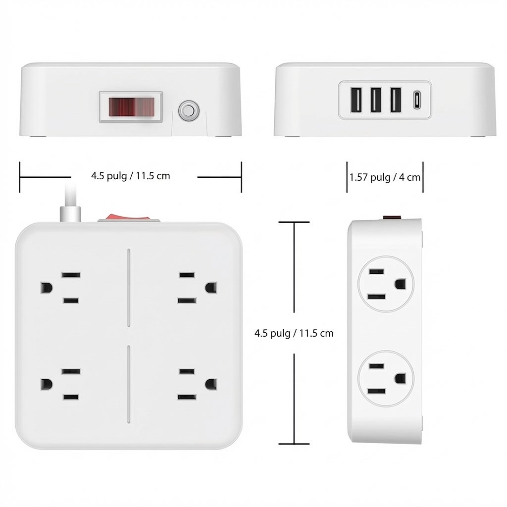 Este multicontacto color blanco incluye 4 enchufes de corriente y múltiples puertos USB, ideal para conectar tu celular, tablet, laptop, ventilador y todos tus aparatos electrónicos al mismo tiempo. Su diseño compacto y moderno se adapta perfectamente a cualquier espacio de tu casa u oficina.